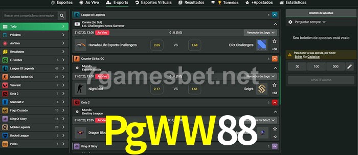 O PgWW88 oferece uma grande seleção de opções de apostas em e-sports com probabilidades competitivas